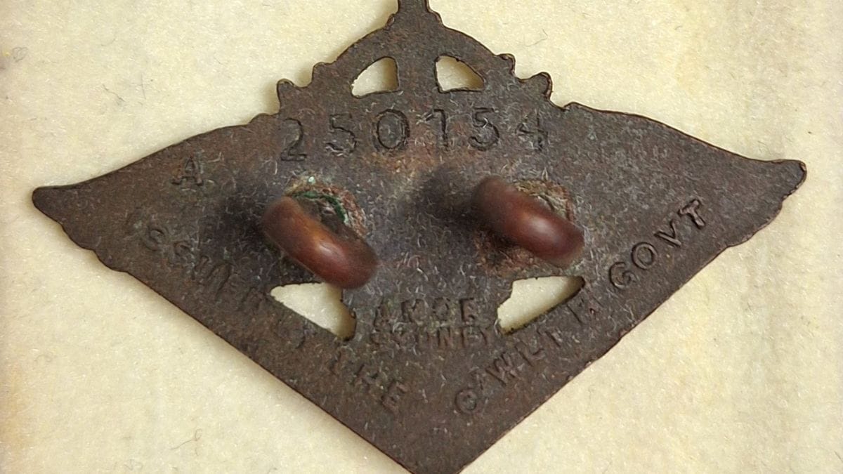 “In my hand was a chocolate brown brass Returned from Active Service Badge with both pin loops still attached,” she said.