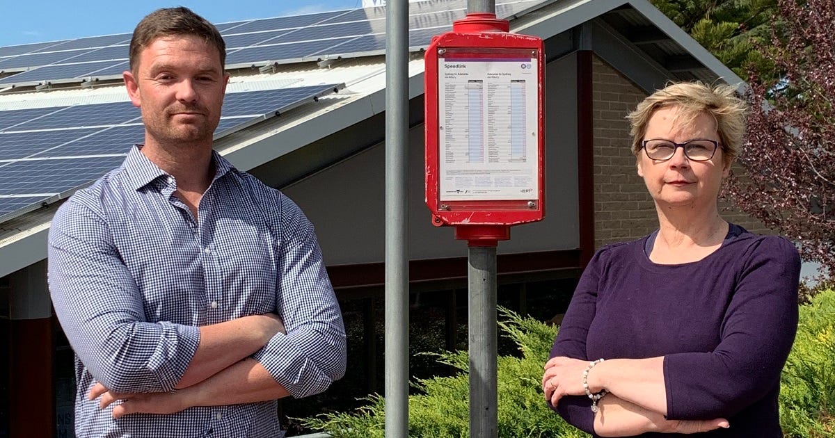 Ms Scriven, pictured with Murray Bridge Councillor Mat O’Brien, wants regional bus services to be reviewed within the next two months.