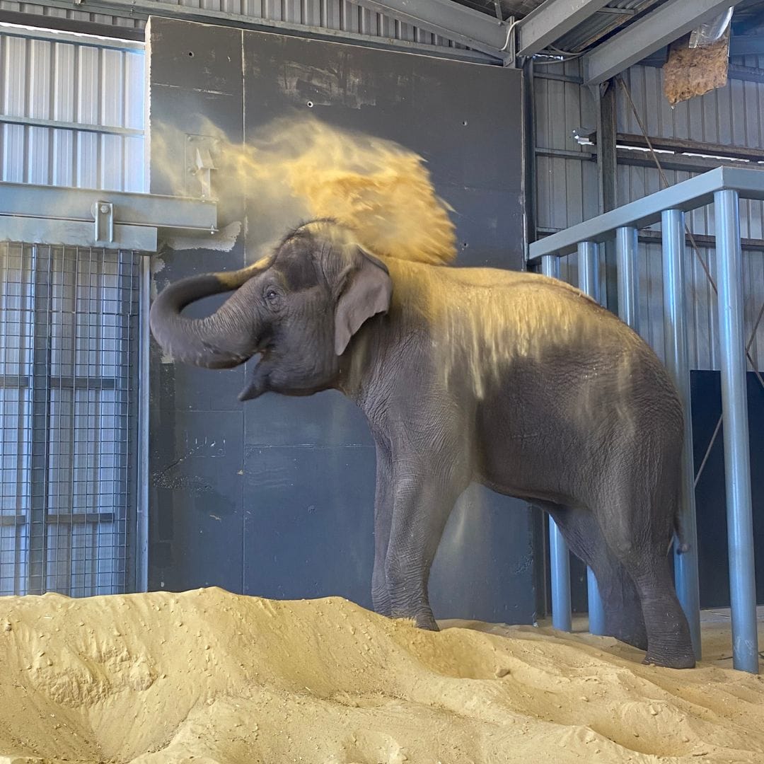 “Shortly after entering the barn, the girls were using their trunks to dust bath and both have been eating, drinking and sleeping, which is very encouraging," he said.