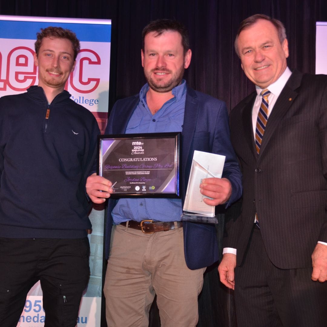- Building trades excellence: Jordan Boyce, a carpenter with Murray Bridge-based Response Building Group, “a vibrant and likeable individual” who had excelled while balancing his apprenticeship with his family life