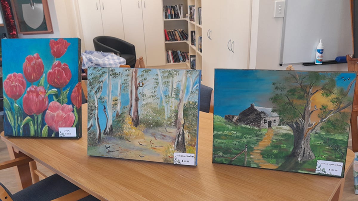 Murray Bridge artist Ursula Kaehne stopped painting 10 years ago to focus on love, but she’s made up for lost time, producing 31 pictures since August and exhibiting them at Warner Close Retirement Living.