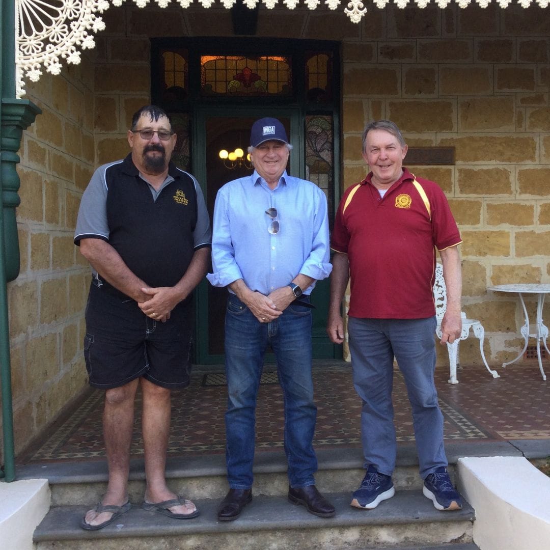 Mid Murray Classic Car Gallery at Swan Reach and Tony Friebel (Murray Mallee Auto Club); John George (Silverlea Homestead Owner): Claude Minge (ACCMB). Photos: Elizabeth Minge.