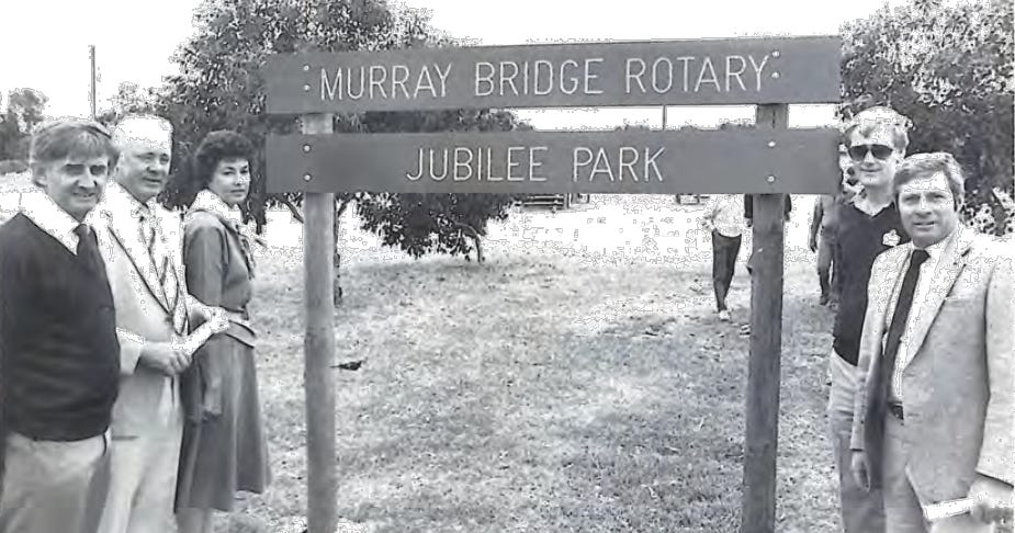 A sign reading “Murray Bridge Rotary Jubilee Park” was even erected there in 1986 – the year of South Australia’s 150th jubilee – after the club finished building a playground.