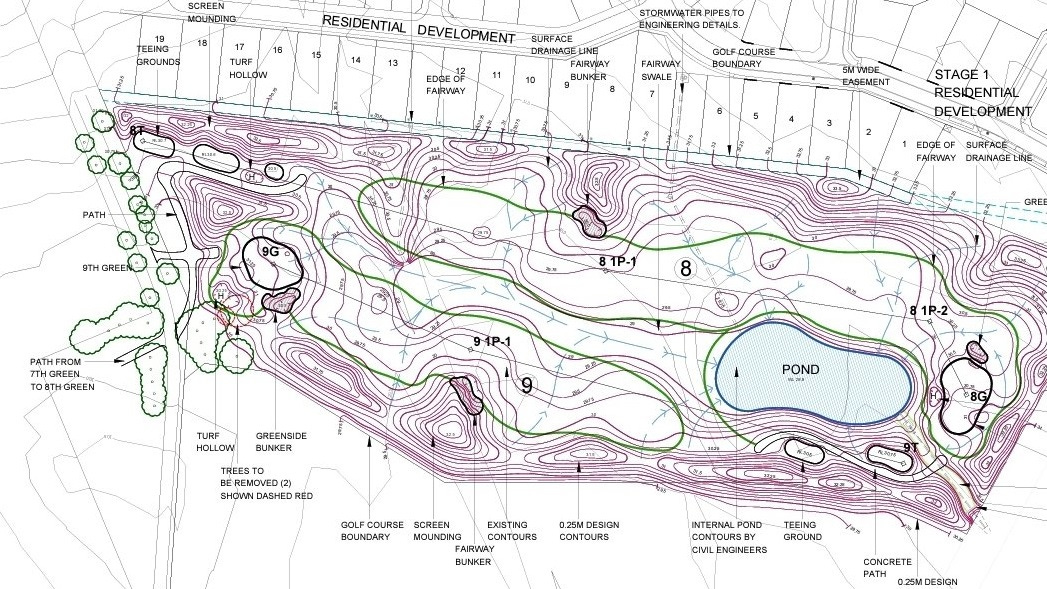 Spry will move 80,000 tonnes of dirt for the project and build a water hazard – which will also act as a stormwater basin – as well as four bunkers.