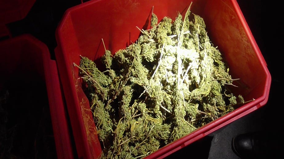 Police raided the man's property around 11am and allegedly found three mature cannabis plants, plus four kilograms of the drug in its dried form.