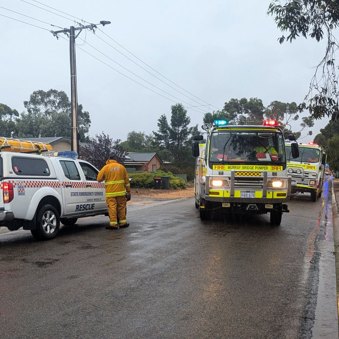 Emergency services have responded to almost 60 calls from help around Murray Bridge after a heavy rain band passed through on Sunday afternoon.