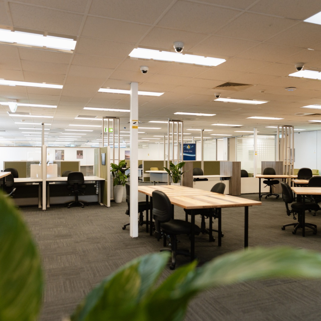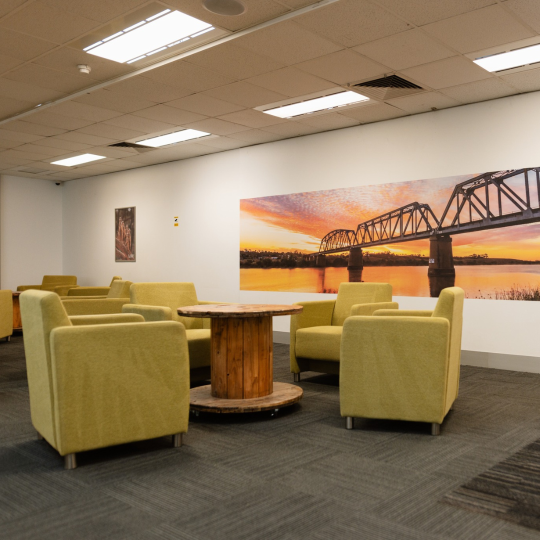 The expansive space at 20 Bridge Street – previously a Centrelink office – has been transformed into a flexible space to be used by entrepreneurs, remote workers and tertiary students.