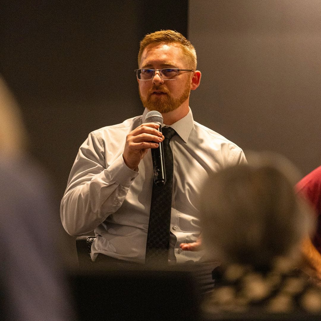 Robert Roylance and Nicole Palachicky represent their parties at the forum. Photos: Chris Charlesworth.