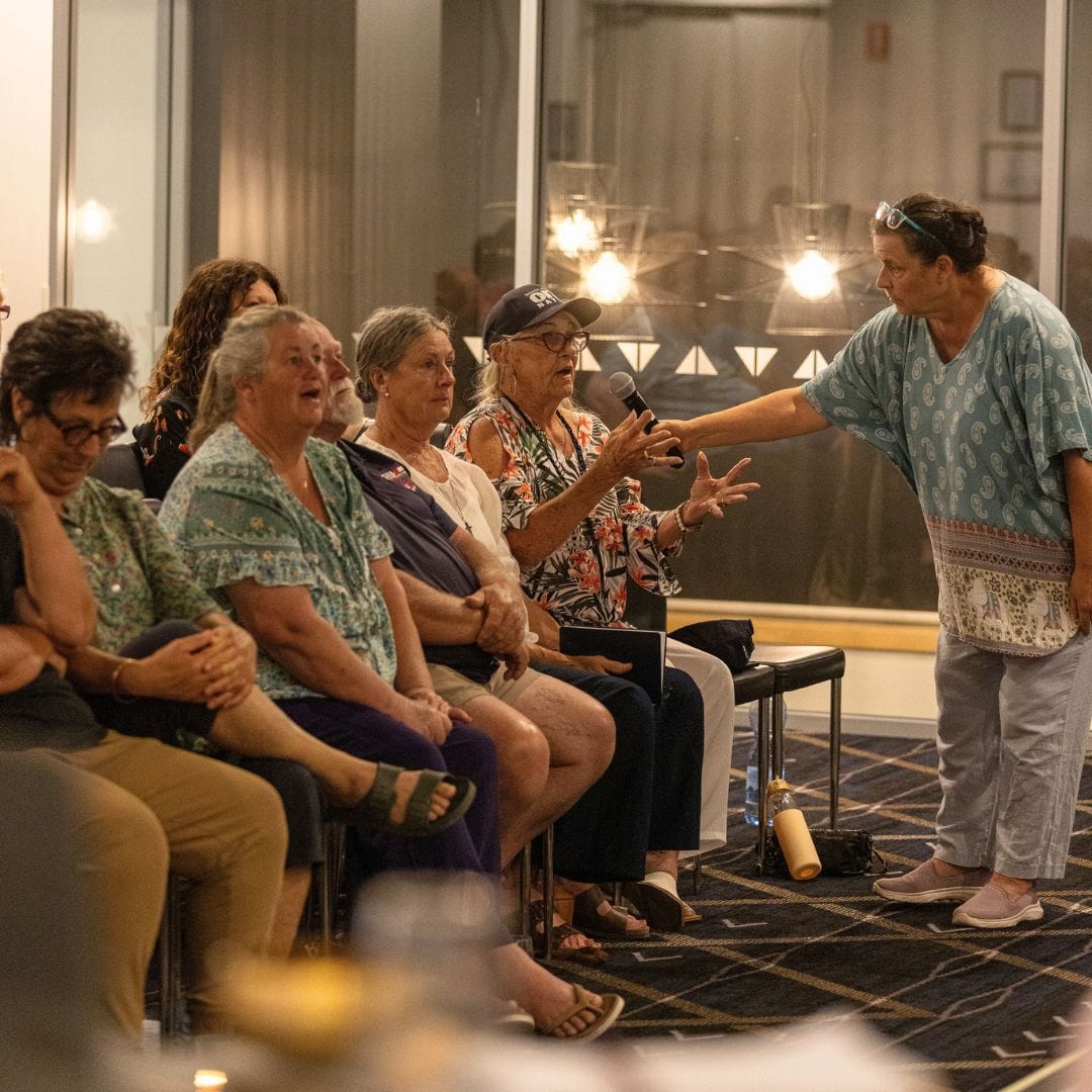 Jane Intini takes questions from audience members, while Peri Strathearn contemplates somebody's answer. Photos: Chris Charlesworth.