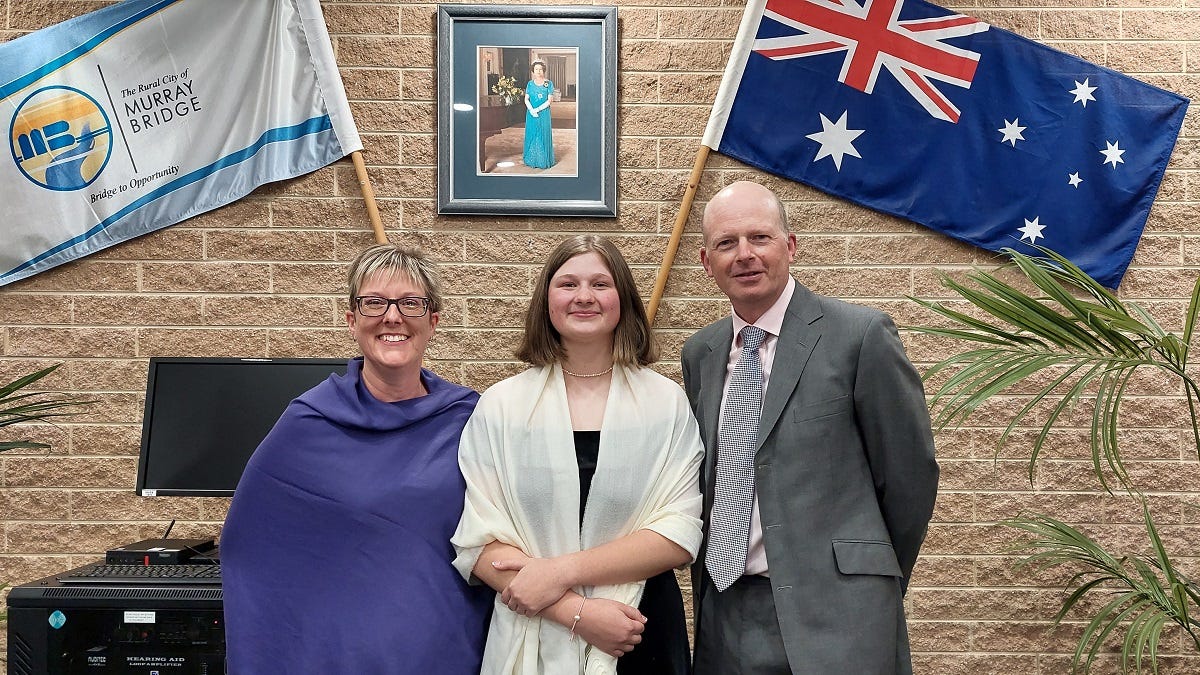 Andrew, Karen and Charlotte Meddle are among the 12 newest Australians to have made their citizenship pledges in Murray Bridge.