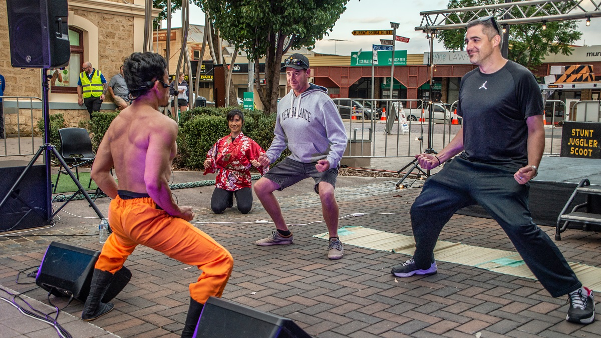 Hundreds of people have crowded Sixth Street, Murray Bridge for the city’s annual Adelaide Fringe party.