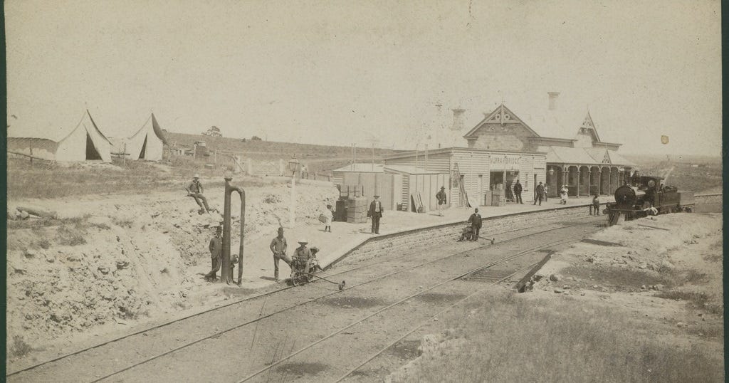 Like the train, its story passes through Murray Bridge – pictured in 1887, the year the Overland first ran – at points.