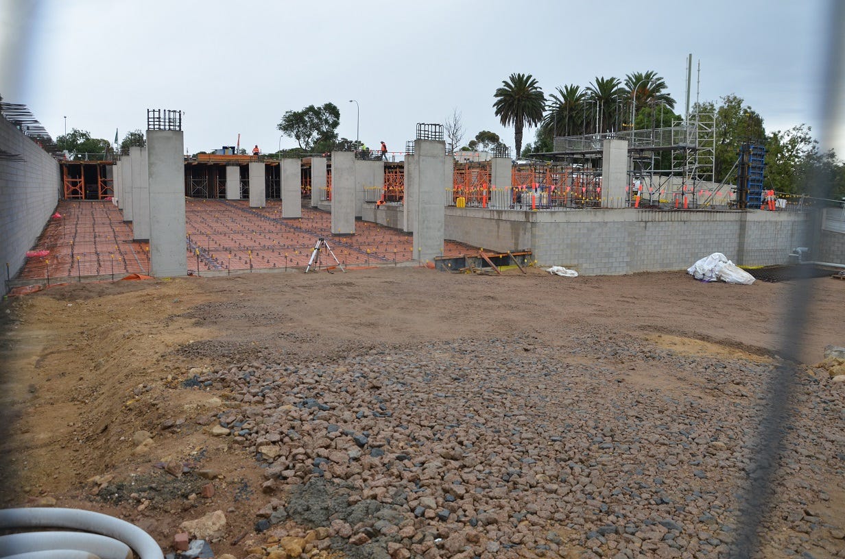 Work has continued in recent weeks; builders have reached the ground floor of what will be a six-storey building after laying a foundation and establishing retaining walls around a planned underground car park.