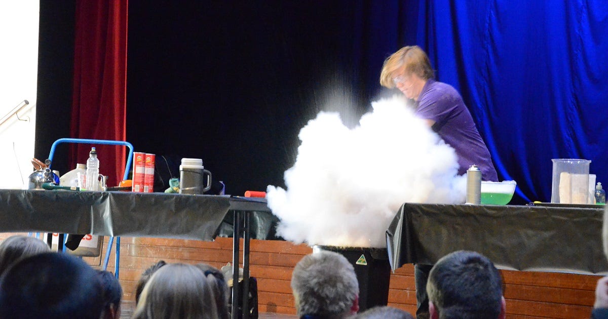 Accompanying the spectacle were the questions intended to get the children thinking: what does a fire need to burn, how cold is liquid nitrogen?