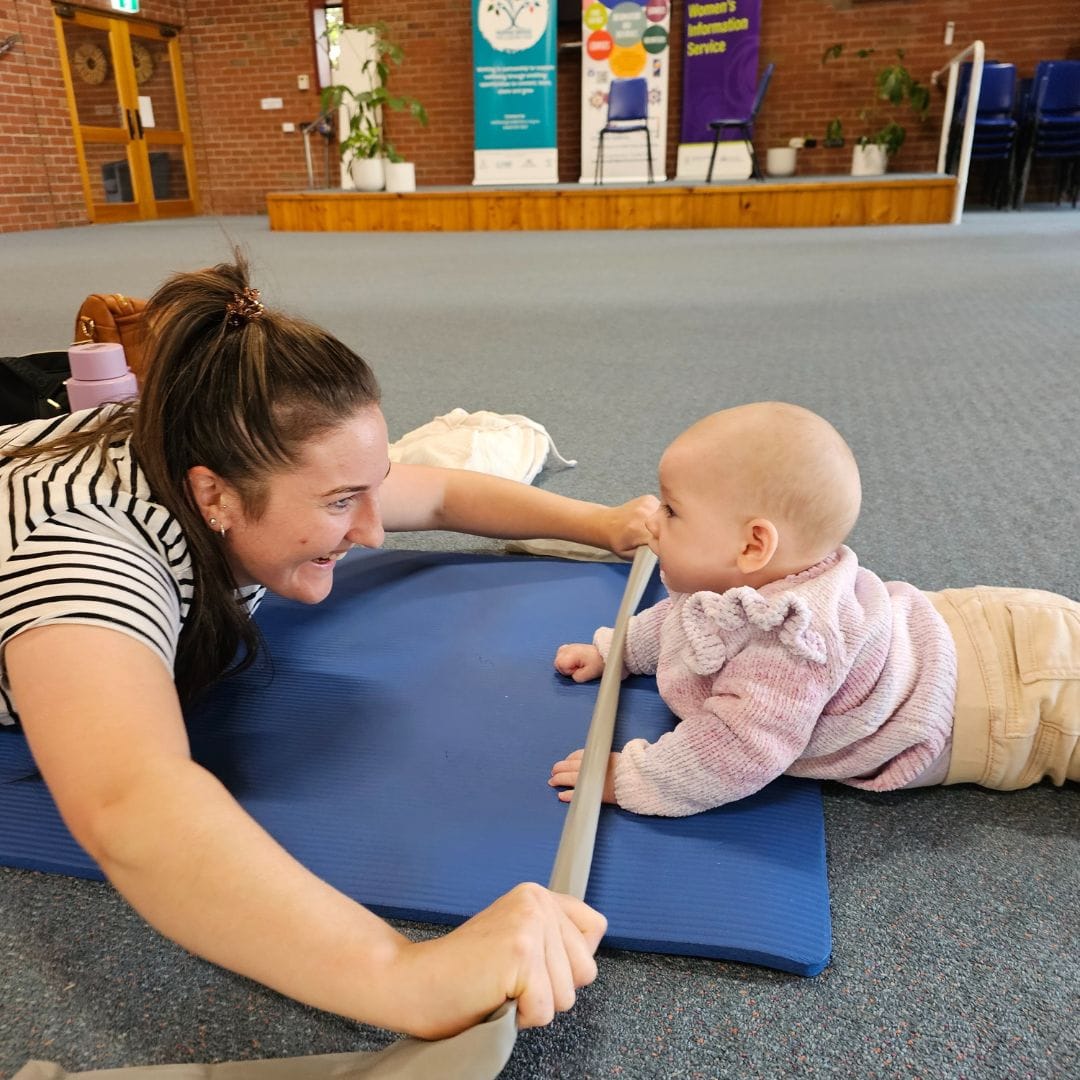 On Wednesday mornings, mums and their little ones practise their pilates skills and share conversations at the Square Community Centre in Murray Bridge.