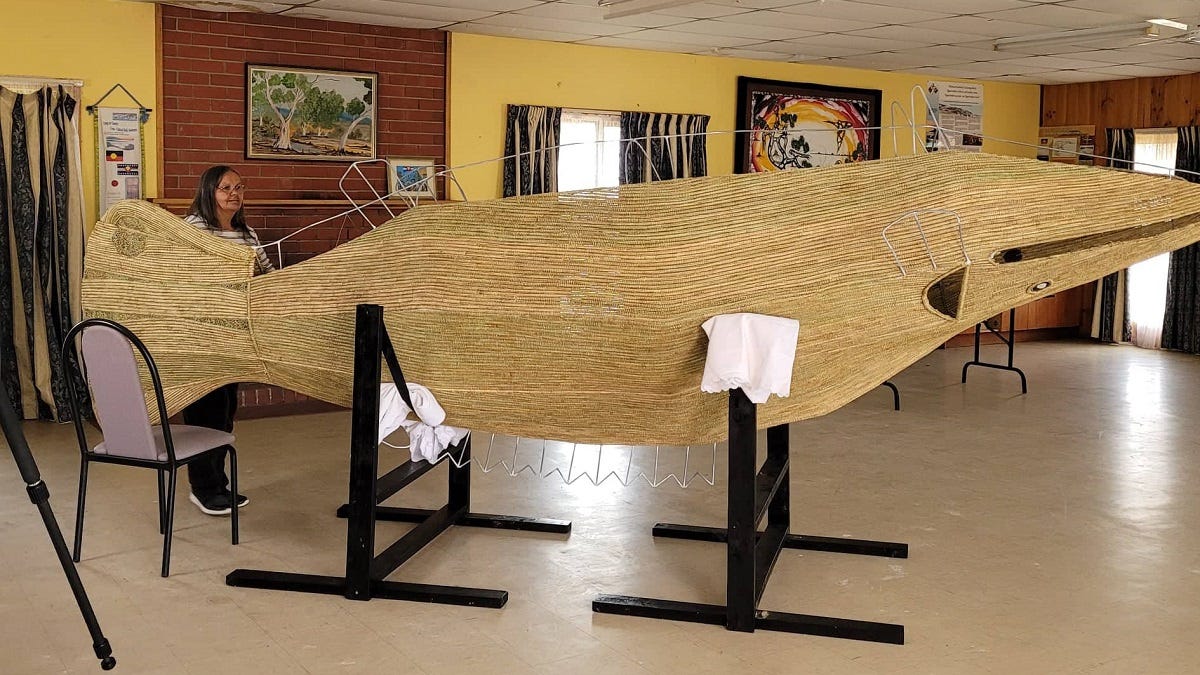 After months of labour, the weaver has completed a giant Murray cod artwork for the SA Maritime Museum in time for National Reconciliation Week.