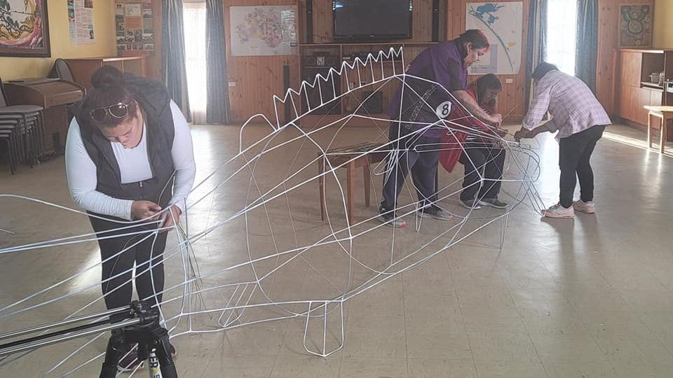 Using rushes gathered on the Coorong, woven around a wire frame four and a half metres long, they made a sculpture of the great fish.