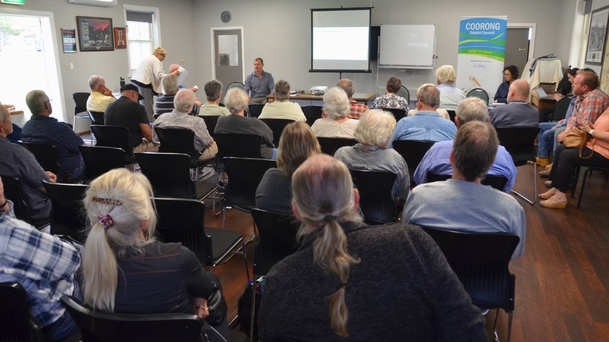 About 30 people gathered at the Wellington Hall to hear Coorong council capital projects manager James Clarke explain why the project was needed – and why their water bills would more than double.