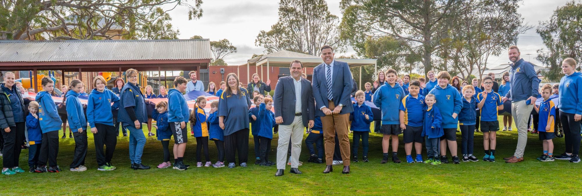 On Wednesday, August 13, MP Tony Pasin visited Tailem Bend Primary School to give local students the rare opportunity to see the iconic flag up close and personal.