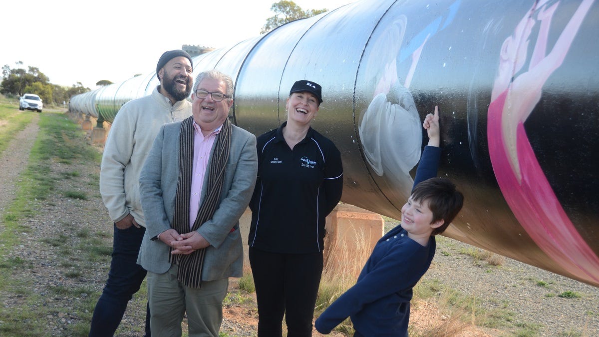 Palmer residents are celebrating a space-themed design on an SA Water pipe, while Murray Bridge waits for its silo artwork.
