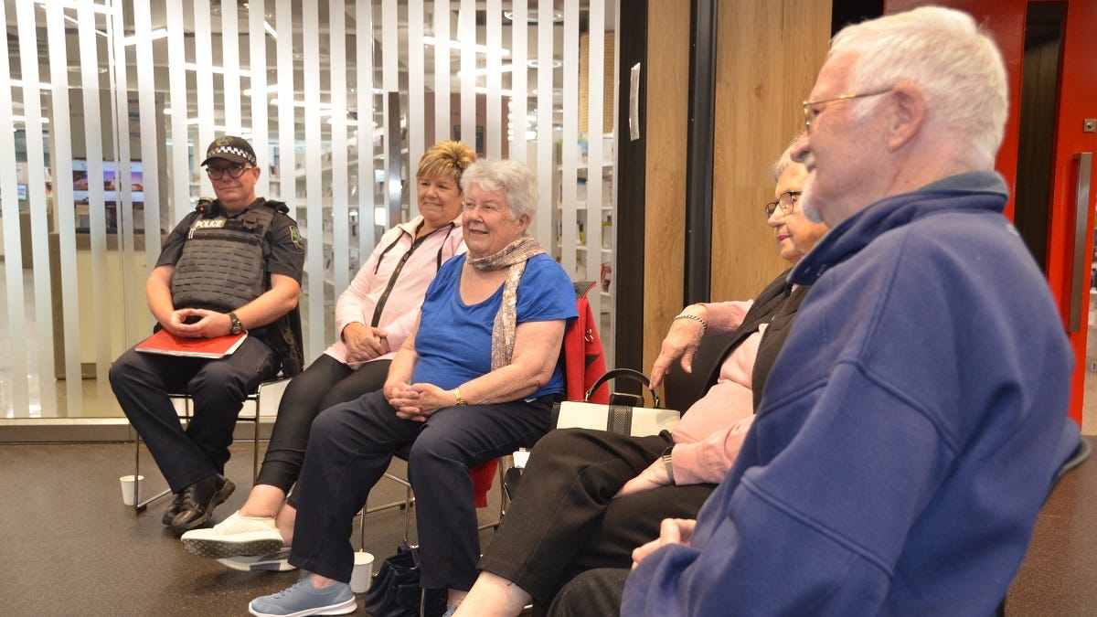 Anne Bachmann OAM has visited Murray Bridge Library to discuss her prisoner reading program with women’s and children’s rights campaigner Annette Korzeba, SAPOL Senior Constable David Brown and other guests.