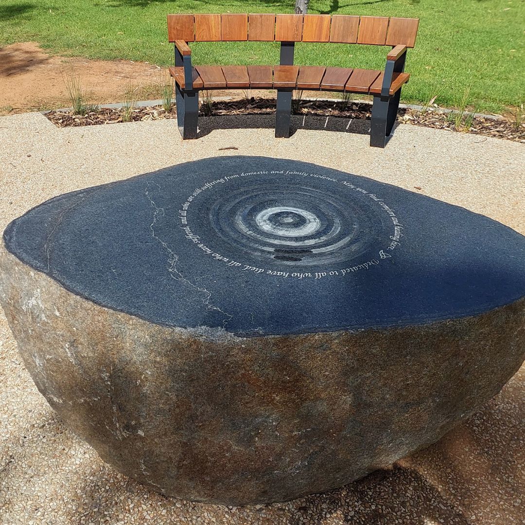 Adjacent is a 2024 granite sculpture, the Place of Courage, a tribute to victims of family and domestic violence.