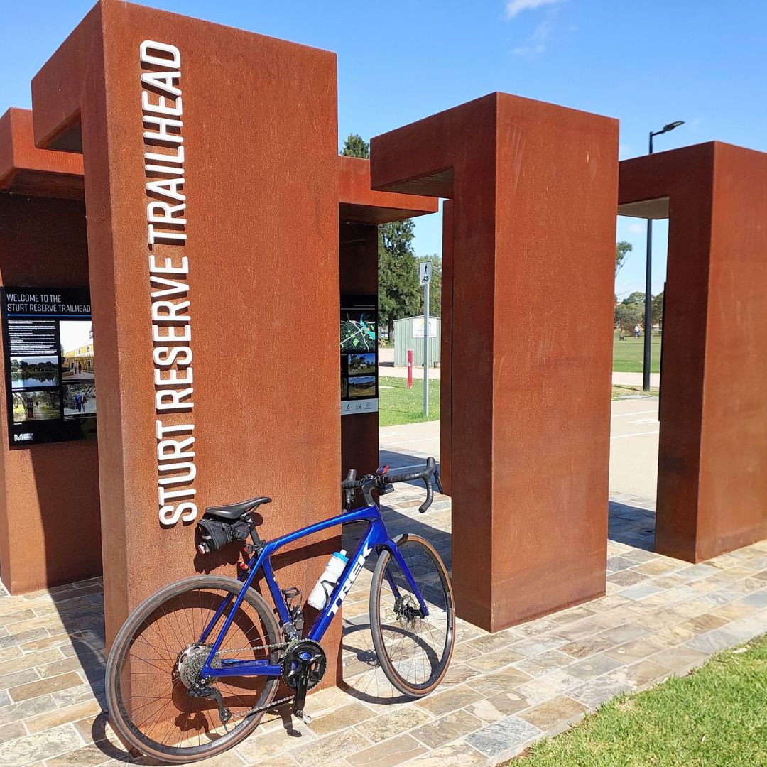 Starting off from the distinctive corten steel-structured Sturt Reserve trail head, riders can follow the dual-use concrete path that leads along the riverfront past the Murray Bridge Rowing Club.