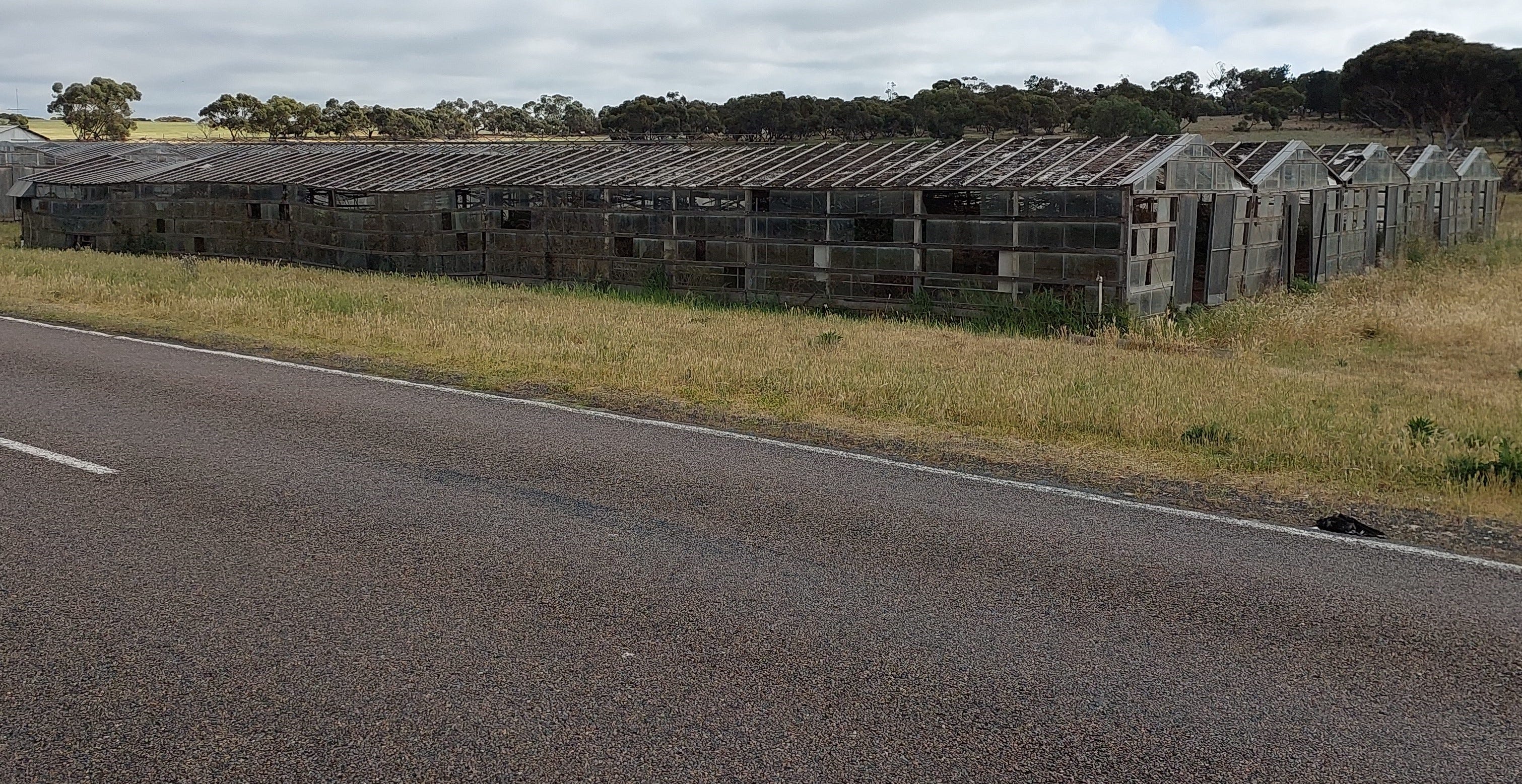Venturing further along, also on the right-hand side of the road, is a fast-disappearing legacy of the once important Murray Bridge glasshouse horticulture industry in the form of rows of derelict glasshouses.