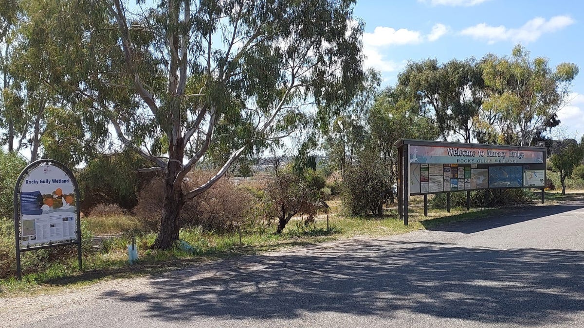 The ride then crosses the Adelaide to Melbourne railway line and passes the ecologically important Rocky Gully Wetland on the right hand side.