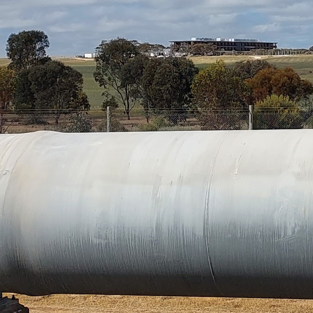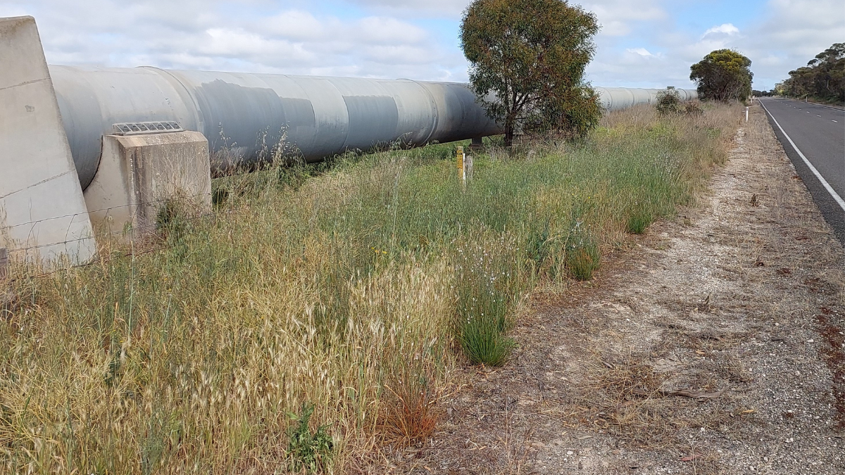 Locals term the above-ground Murray Bridge to Onkaparinga water pipeline the “drinking straw”; cyclists can follow it directly from the pump station to the entrance of the Monarto Safari Park.