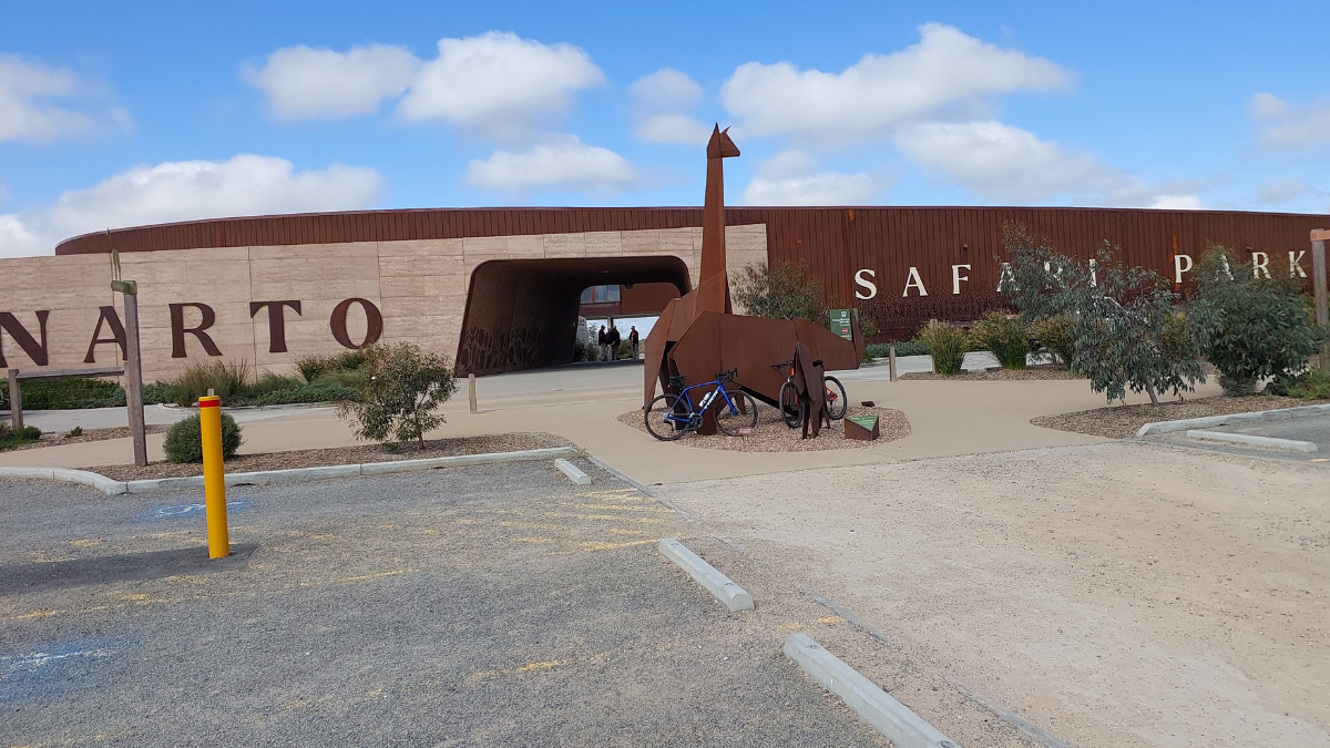 At this stage, cyclists looking to pay a fee to enter the actual wildlife area of the Monarto Safari Park cannot take their bikes in and must leave them outside in the expansive carpark.