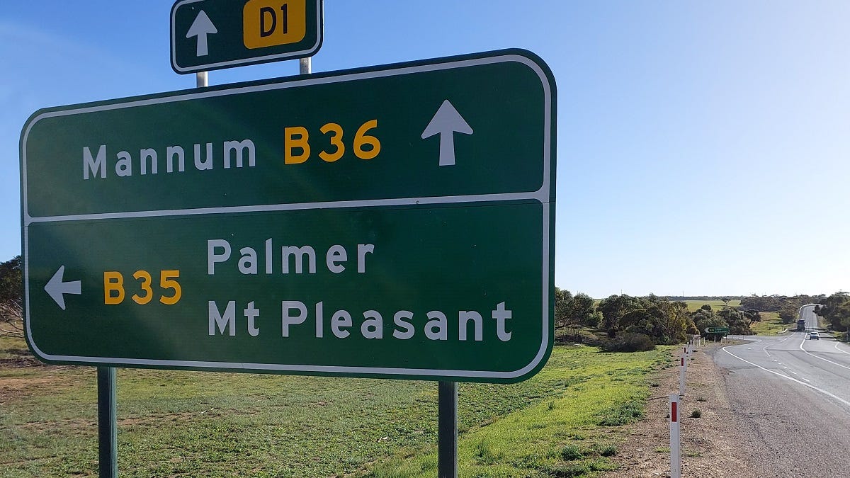 Fortunately, at this intersection most of the vehicular traffic following the main Monarto to Mannum arterial route turn left in the direction of Mannum, while bike riders proceed straight ahead onto Rathjen Road.