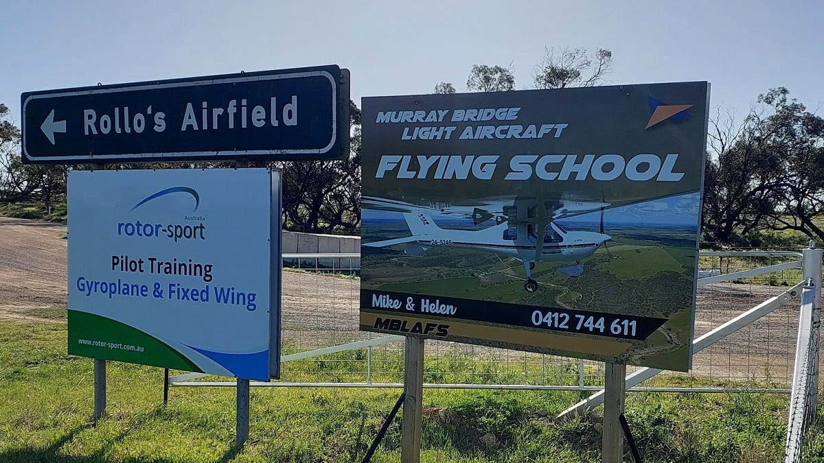 The road passes the prominent Rollo’s Airfield, one of the numerous privately owned fixed and rotary winged airstrips in the district.