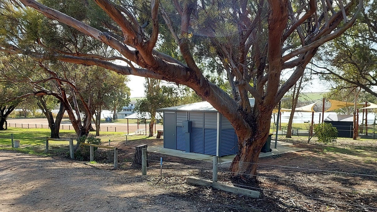 An alternative route for cyclists looking to ride a little further is to turn left at the intersection of Rathjen Road with Mypolonga Road/Kallina Drive and head to Woodlane Reserve on the banks of the River Murray, with an attractive park, boat ramp and nice modern public toilets.