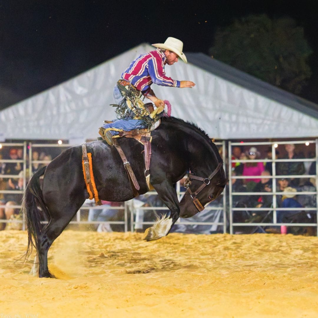 Wild western scenes play out at the Riverbend Rodeo on Saturday night. Photos: Peter Blacket.