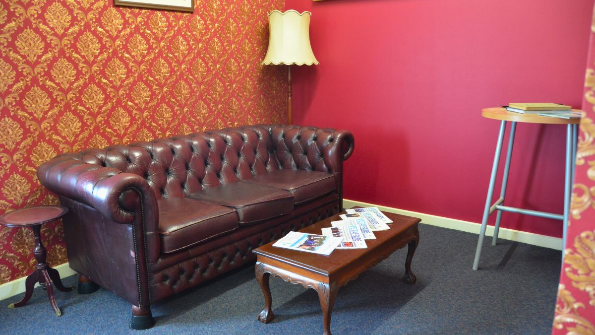 One corner of the room is done up to feel like a gentleman’s smoking lounge.
