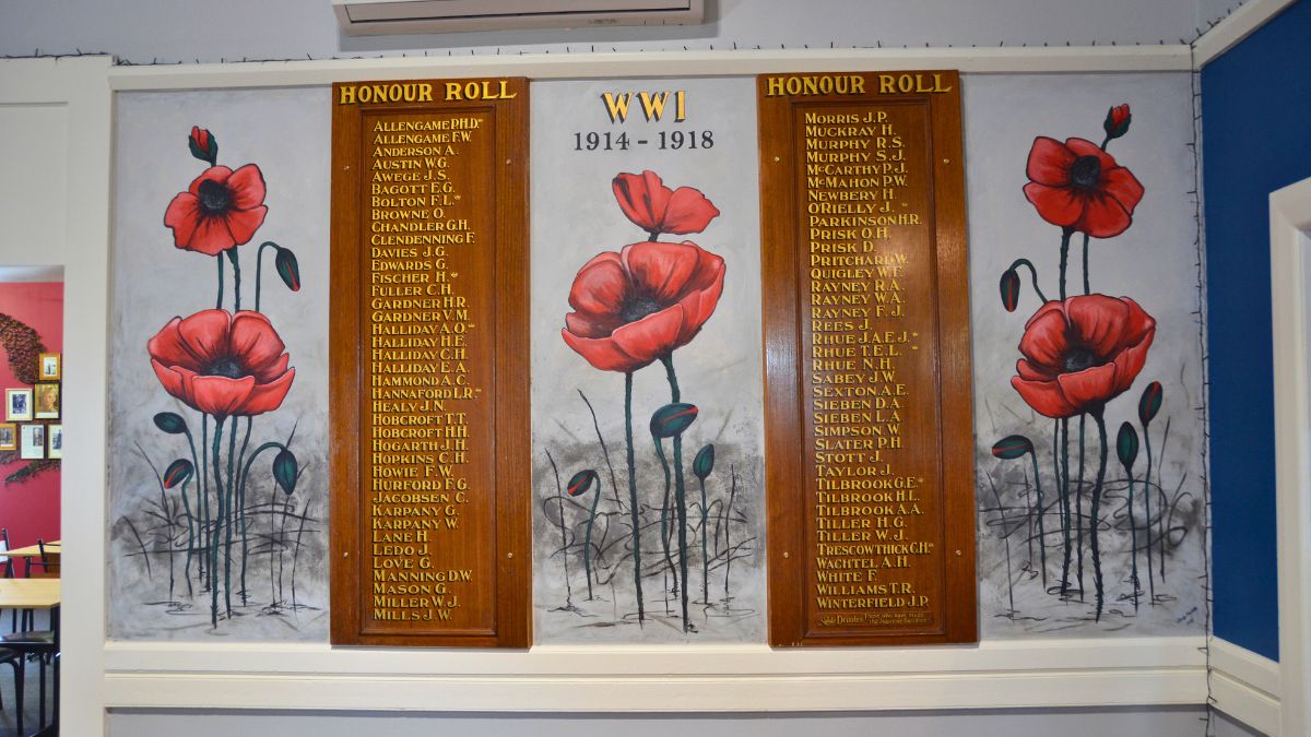 Gone are the “drab and dreary” walls and curtains, replaced with fresh paint, wallpaper, carefully curated displays and – in the memorial room – a huge mural of the World War II destroyer HMAS Nizam and World War I submarine HMAS AE2 that took her three months to paint.