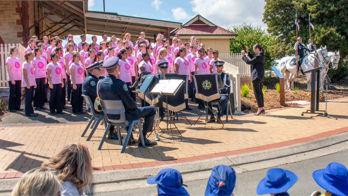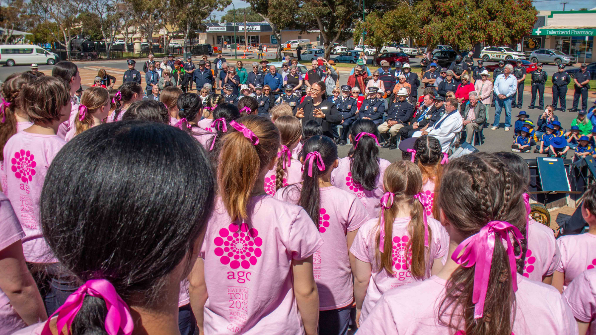 There were also historical recreations of uniformed SA police from 1885, the laying of wreaths by Commissioner Stevens and Coorong Mayor Paul Simmons, a police band and a performance by the Australian Girls Choir.