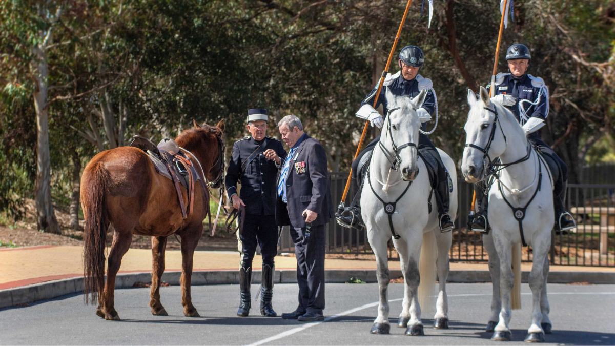 SA Police Commissioner Grant Stevens unveiled the monument in a colourful ceremony involving mounted police officers and their horses, Police Horse Chief and Police Horse Yass.