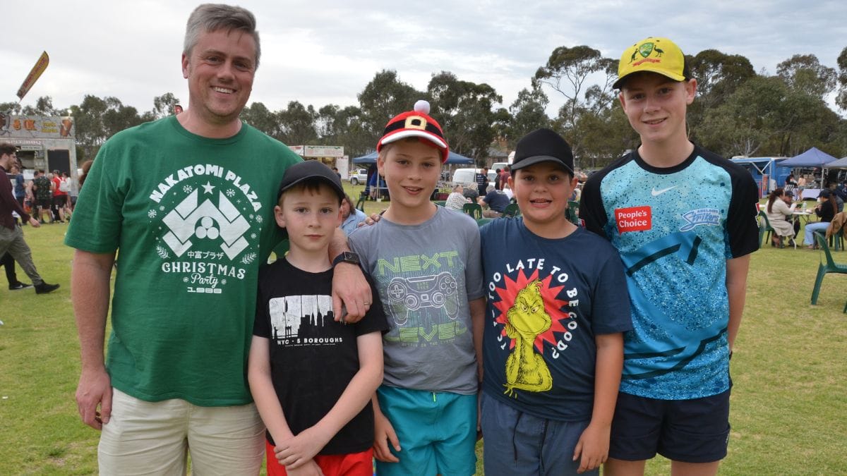 At the Christmas Festival were Michelle Colle-Crack with Aubree and Emmett Whiley; Matt and Sharnie Hutchinson with Olivia, Henry, Thomas and Jasmine; Tiana Balks, Jacinta Dodds and Fabian Poharana with Te Atawhai, Cori and Jordan; Heather Nation with Jonathon and Felicity; Ryan and Nathan Gharazaddine; Brett Birleson, Emily and Ryan Munro, Connor Adams; Narelle, Landon, Ivy and Willow Blackett; Jamie and Mark Rothall with Peyton, Erica and Sean; Scott, Spencer, Isaac Rowland, Nicholas Gates and Mason Rowland. Photos: Peri Strathearn.