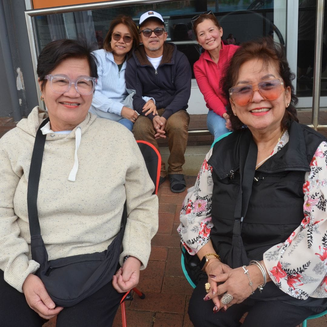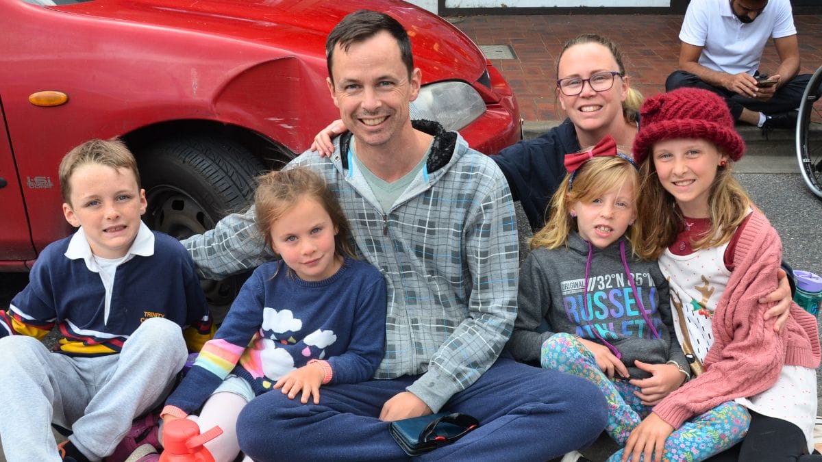 Waiting for the parade are Jack Elliott; Hayden, Kenzie and Nateesha Edwards; Lachie, Lucy, Peter, Chloe, Rebecca and Sophie Hay; Charlotte, Kristy and Charlie Skinner; Marni and Harper Campbell; Emily and Roldan Bandelaria, Zaida and Amelita Dimaano and Zosima Bandelaria; Olivia and Rachael Schulz with Jessica, Joe, James and Matila Di Santo; Levi and Nick Robson with Ryan and Ollie Hansen; and Chelsea and David Pretorius with Ensio. Photos: Peri Strathearn.
