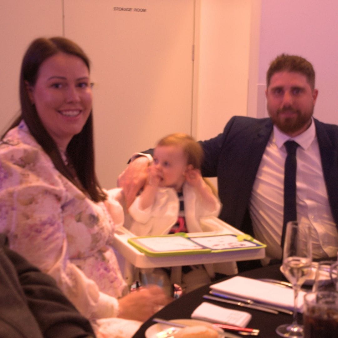 At the awards are Marielle Smith; Linda Kyritsis with Adam Connelly; Mr Connelly with Chelsea Haby; Kate and Matt Allen and their baby; Mr Strathearn, Mr Connelly, Jennie Lenman and Airlie Keen; and Nathan and Analise Gates. Photos: Penny Heighes.