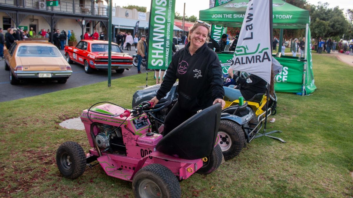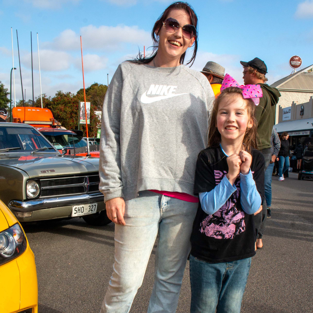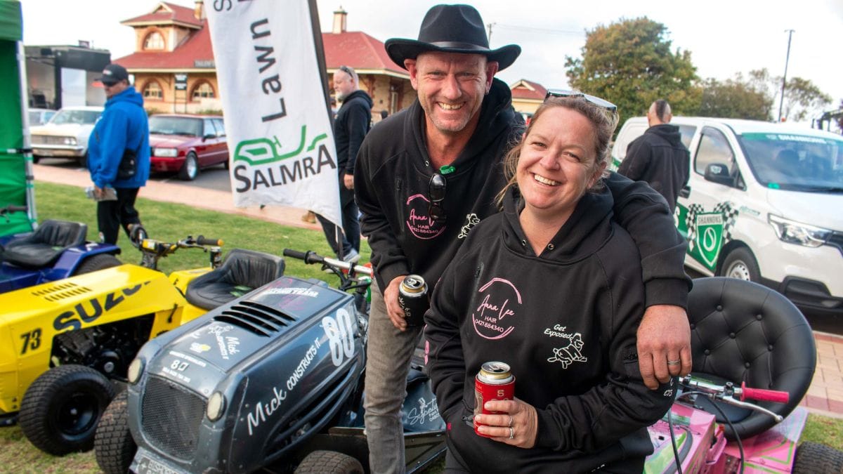 At the Street Party were Melissa Gower and Deanne McPherson; Mower Racer Daniell Bishop; Mower Racer Suzie Collett; Nick Valhos and Nanna Valhos; Rodney Green; Sandra Jaensch and Roy Stopp; Steve and Annette South Monteith with their Rover 105R Auto; Tim and Rebecca Thiele; and Corey and Nicol Sinko. Photos: Glenn Power.