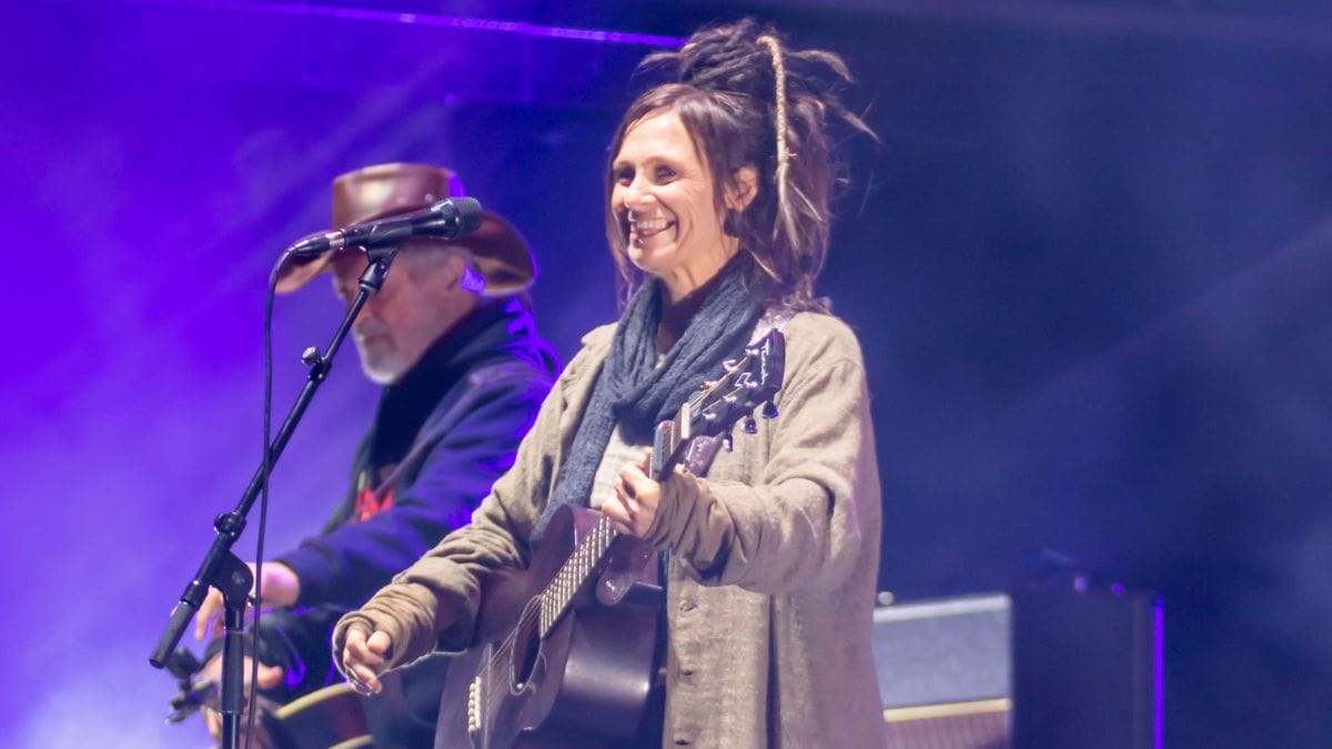 Kasey Chambers, who praised the crowd for “weathering the storms” with smiles and dancing boots.