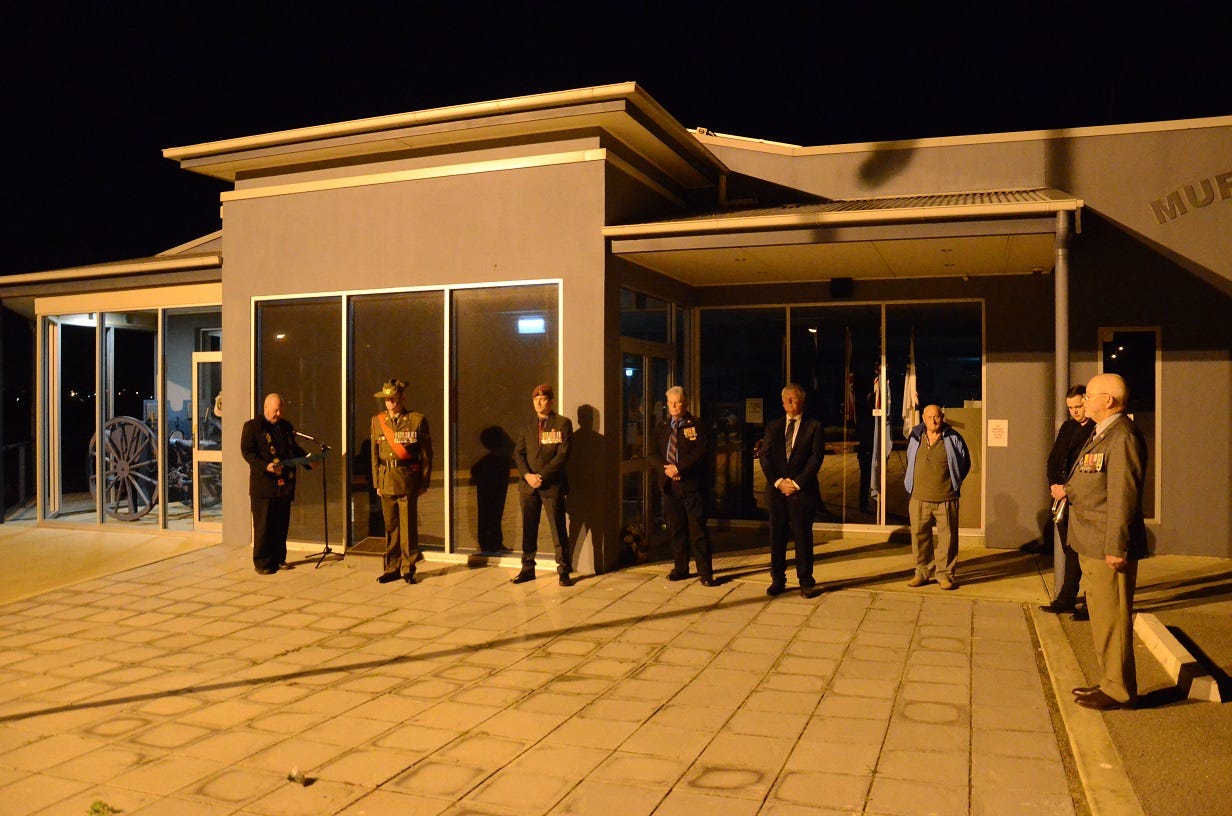 Anzac Day commemorations were similarly subdued elsewhere around the Murraylands, including in Murray Bridge, where eight men gathered for a private commemoration at the RSL clubrooms.