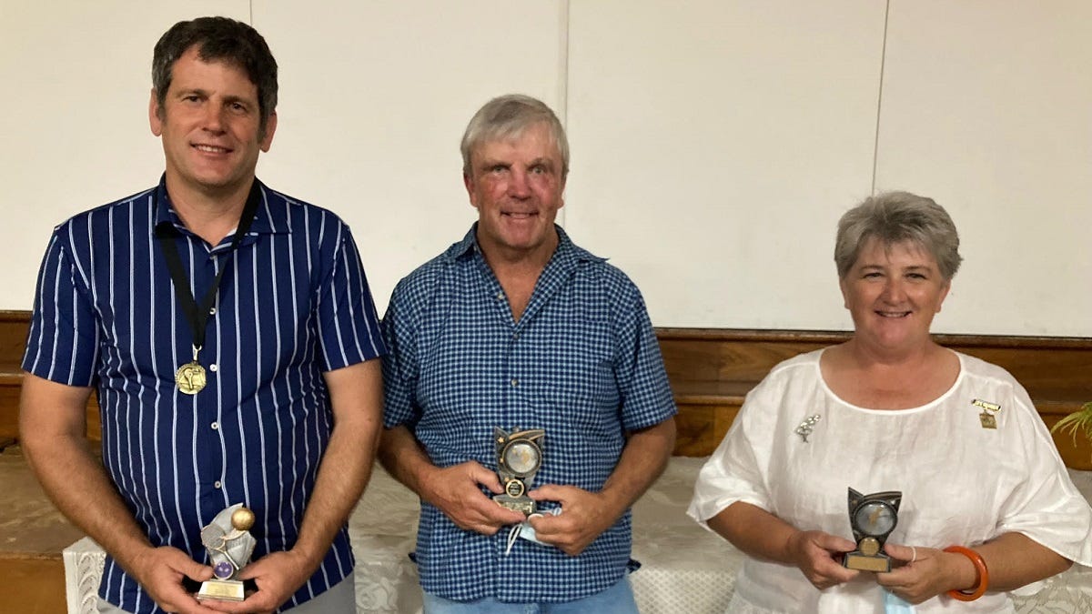 Life member Anne Davids presented senior trophies for the most games won: