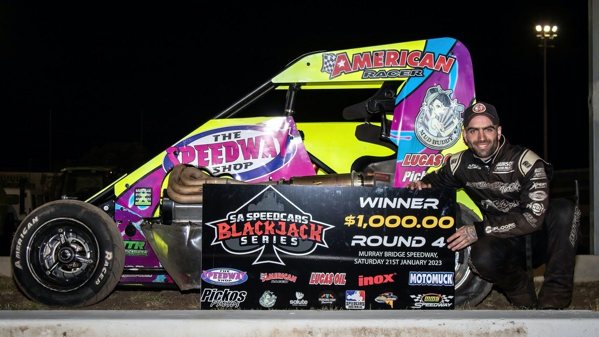 McCarthy was victorious in both the winglesss sprint A-main and round four of the Blackjack Speedcar Series.