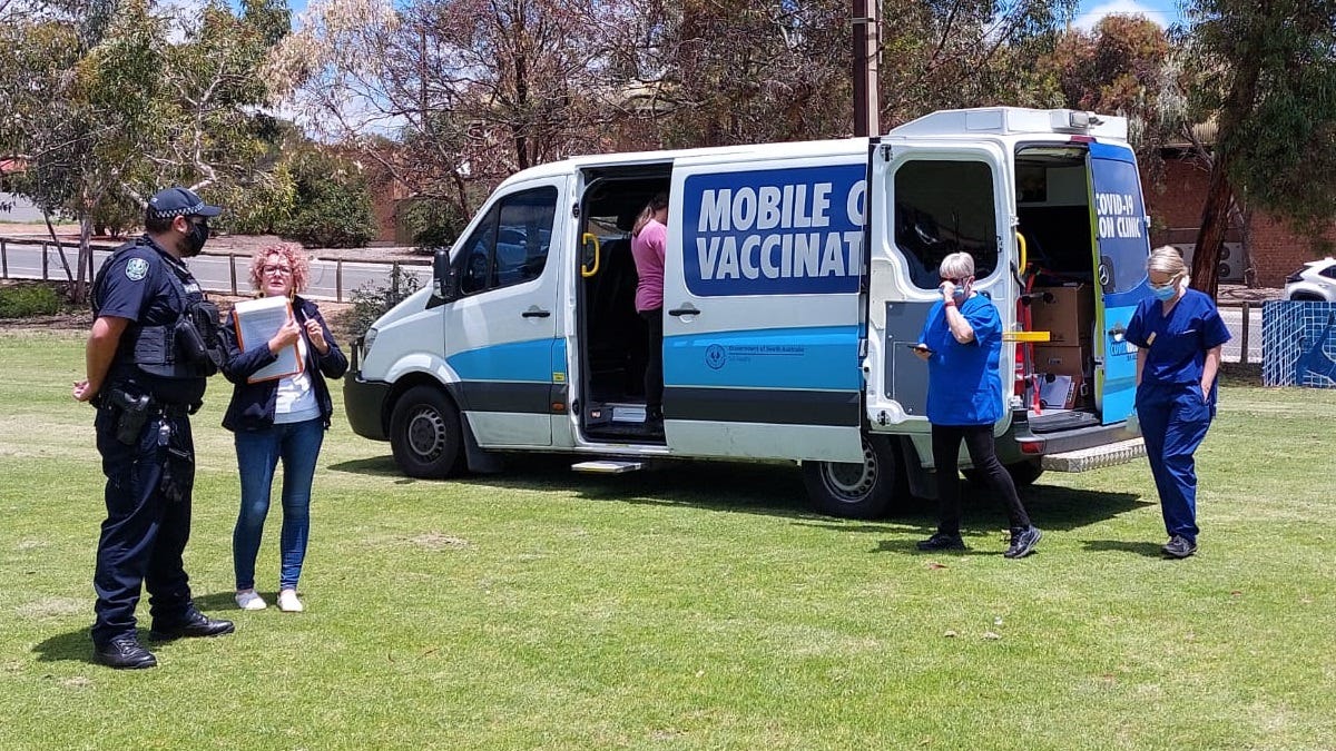 There to show their support were Murray Bridge’s mayor and state MP, representatives of the Murraylands Multicultural Network and Relationships SA, an SA Health van offering COVID-19 vaccinations, and even a bouncy castle and children’s activities courtesy of local resident Michelle Thiele.