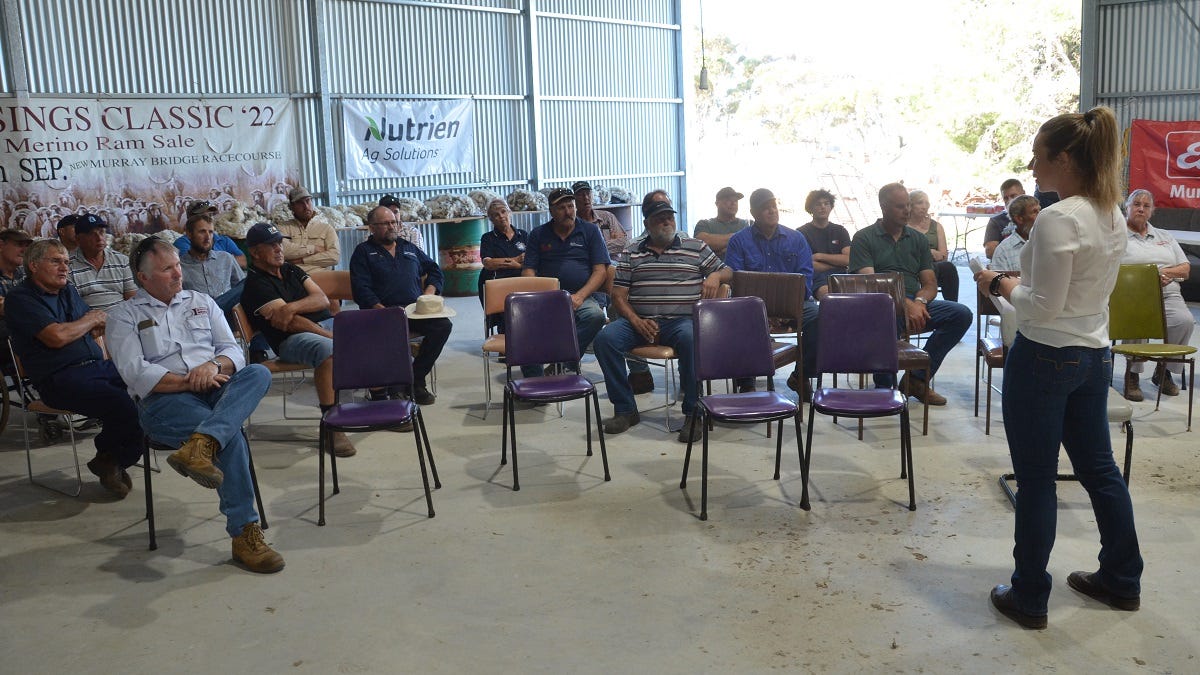 About 50 farmers gathered in a fairly flash shearing shed at Lakeview, the Pearson familyās Brinkley property, on Friday night.