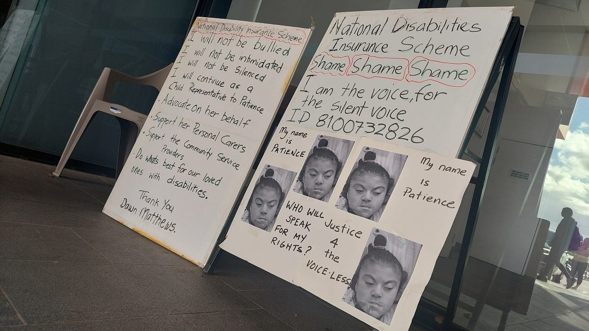 Since starting her vigil, dozens of people have stopped to share their stories, frustrated by how difficult it can be to access the support that the NDIS exists to provide.